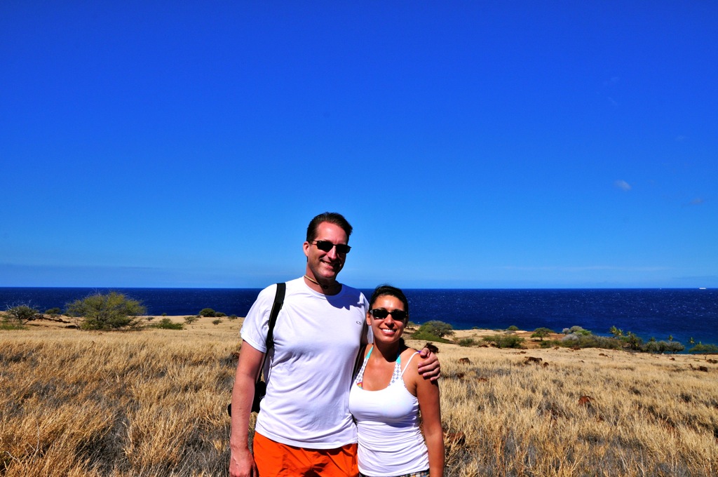 Our car's view at the trail head to Polulu beach/