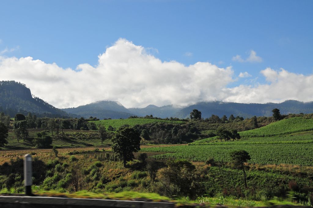 Off to Oaxaca... the road goes thru fields.../